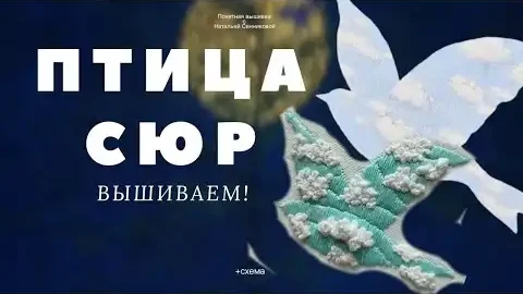 Вышиваем Магритта: Птица — Лонгстич, Облака — 3D Узелки. Бесплатная схема!